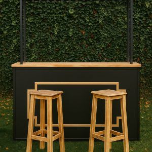 Lo que hace especial a nuestra BARRA DE MADERA COPERO es la presencia de una estructura en la parte posterior de la mencionada anteriormente utilizada para colocar las copas de manera que el hacer uso de ellas sea más fácil. Útil y fácil de montar, ideal para eventos como bodas, comuniones, celebraciones…