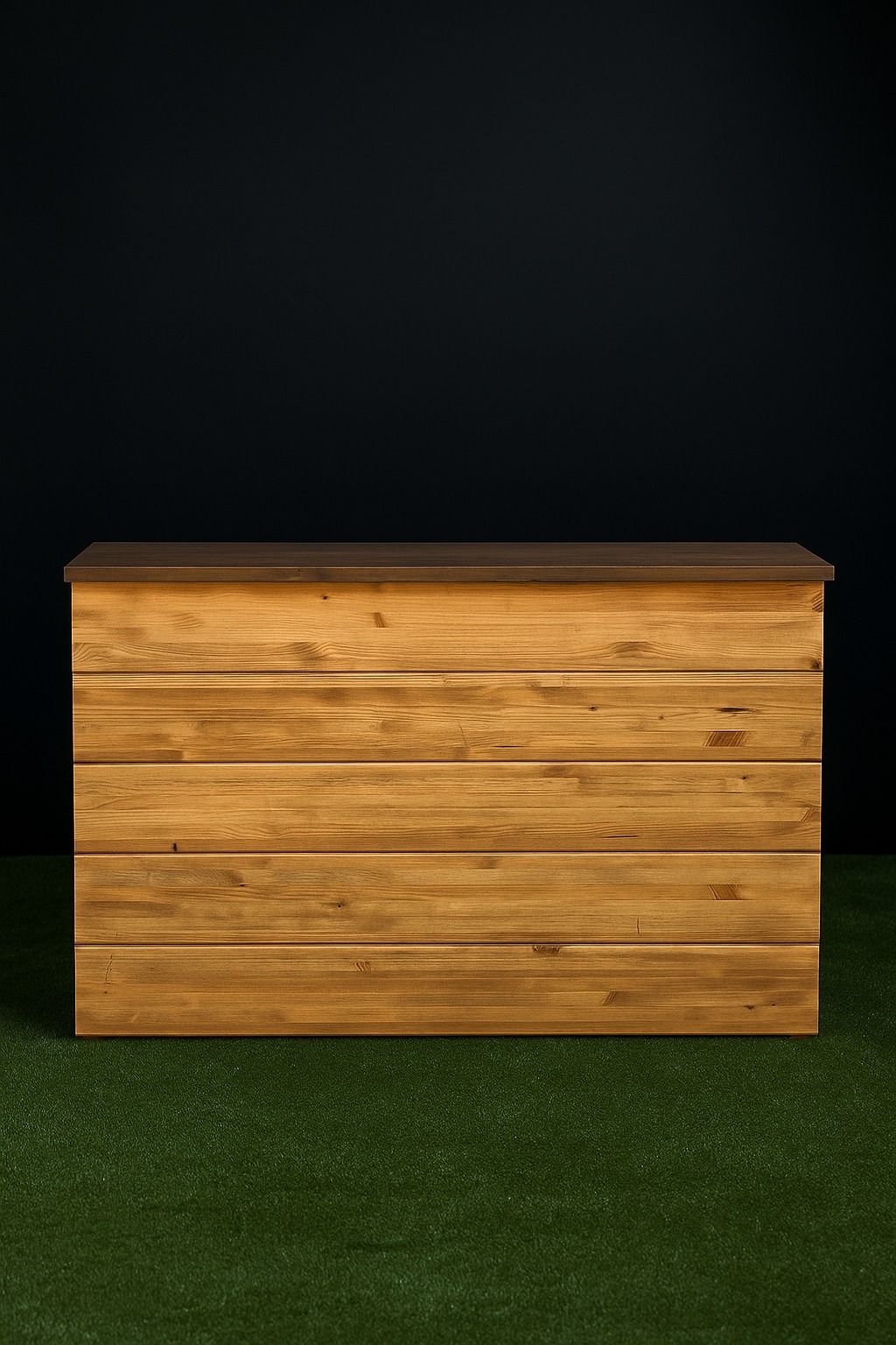 En Eventos Milmar, presentamos nuestra Barra de Madera Duelas Horizontales sin Separación, un diseño elegante y funcional que destaca por su acabado uniforme y líneas limpias. Fabricada en madera de pino macizo, esta barra es perfecta para eventos, celebraciones o negocios que buscan calidad y estilo en un solo producto.