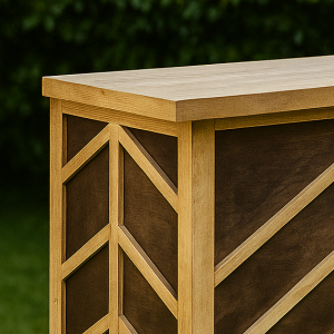 Con un diseño frontal en patrón de espiga que resalta por su modernidad y buen gusto, esta barra es mucho más que un simple mueble: es una pieza que añade distinción al espacio donde se coloque. Gracias a su fabricación propia, en Eventos Milmar cuidamos hasta el más mínimo detalle, asegurando un acabado impecable que cumple con las expectativas más exigentes de nuestros clientes.