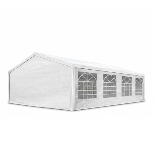La carpa 5×8 economy para fiestas y eventos se puede instalar de forma rápida gracias al sistema de clic de alta calidad. El marco de acero totalmente galvanizado está protegido contra la corrosión. Las lonas consisten en material de PE de 350Newton (Resistencia al desgarro según la norma DIN EN ISO 13934-1), son resistentes a los rayos UV y 100% impermeables. Los laterales se pueden poner o quitar según la ocasión.