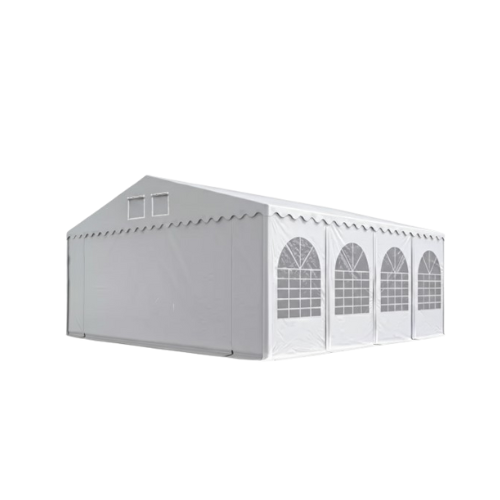 Con una altura lateral de aproximadamente 2.6 m, esta carpa tiene un tubo más robusto y además, está equipada con un refuerzo perimetral en el suelo y refuerzo «T» invertida en el techo.Las lonas de PVC de 800 Newton (Resistencia al desgarro según la norma DIN EN ISO 13934-1) son muy duraderas, resistentes a la intemperie y 100% impermeables. La lona tiene un tejido interior de rejilla resistente a las rasgaduras y un alto factor de protección solar de 80+. Los paneles laterales se pueden unir individualmente a una distancia de 2 m y, por lo tanto, permiten muchas variantes. Esta carpa es muy estable e ideal para su uso durante todo el año.