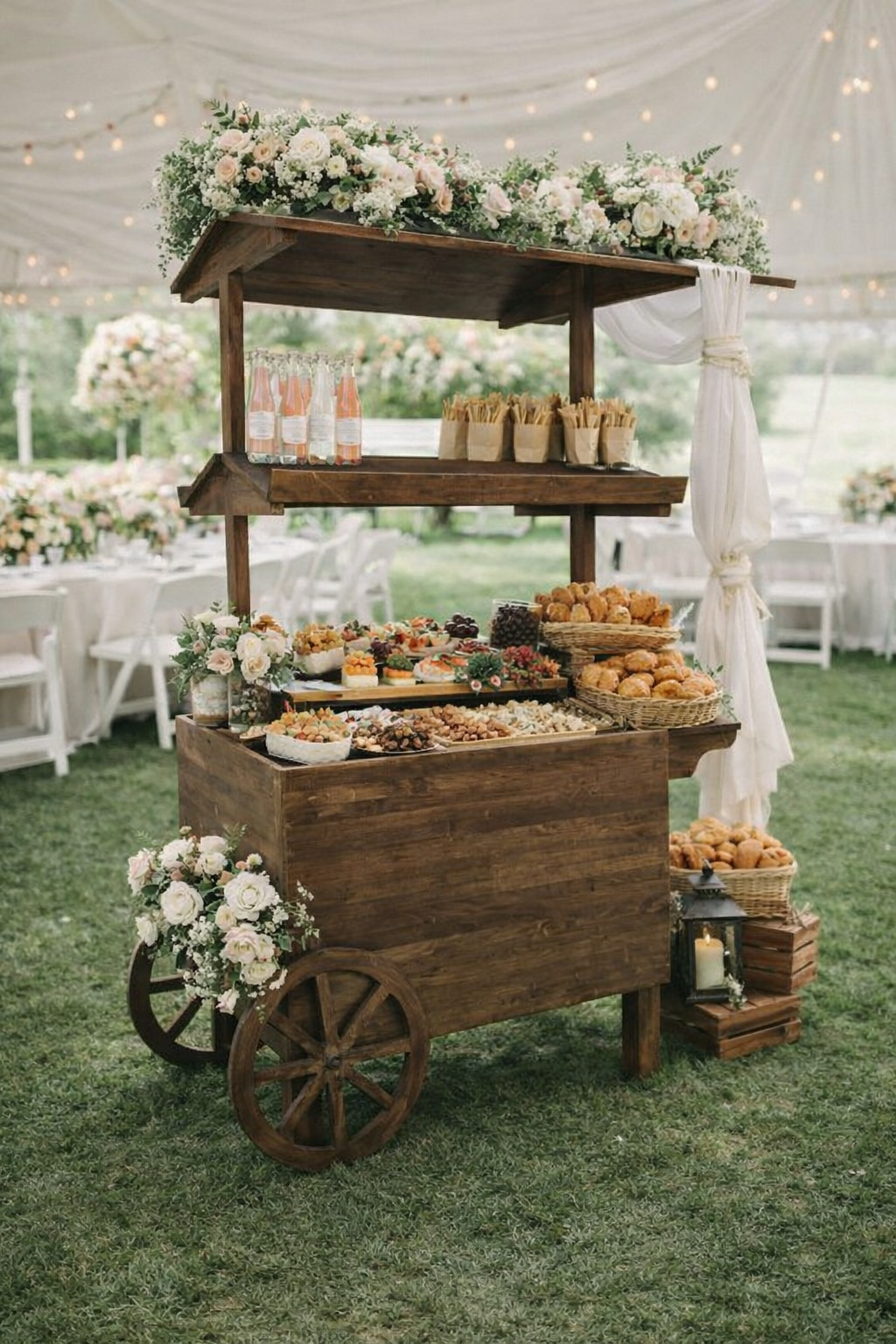 Este carrito también funciona perfectamente como Candy Bar de madera, ofreciendo una presentación encantadora para: