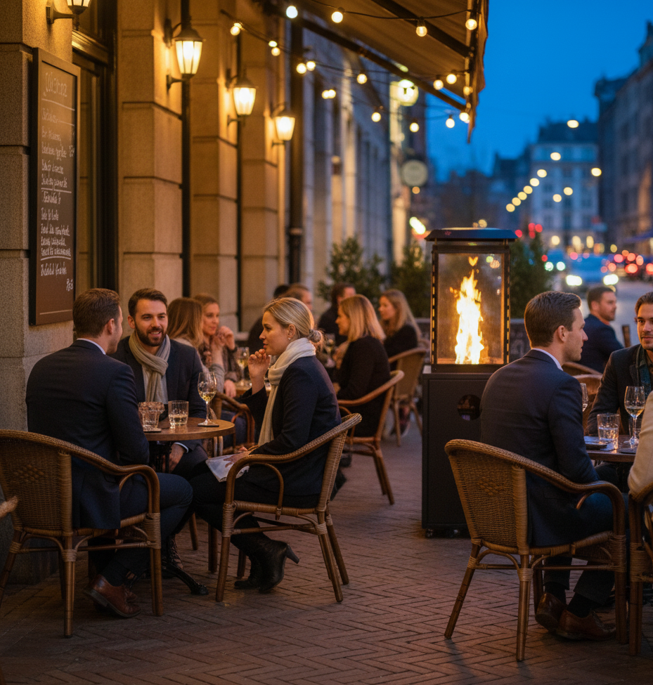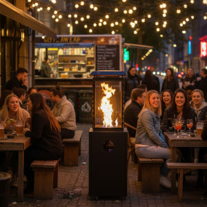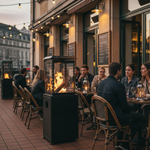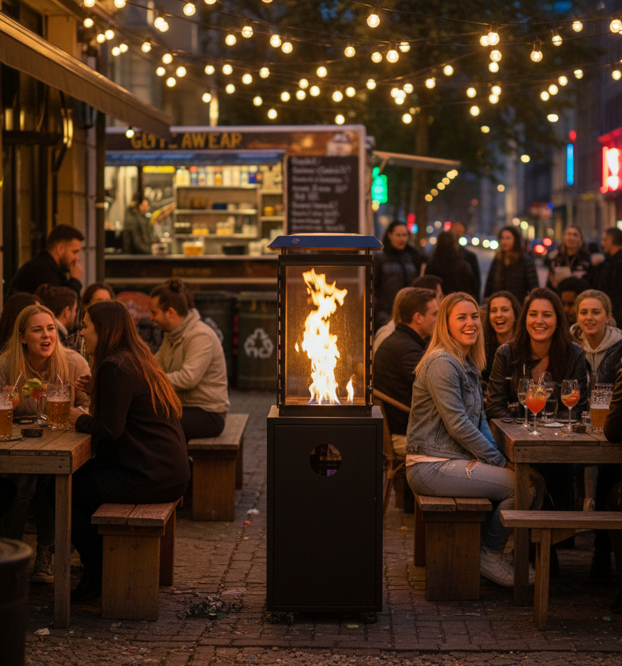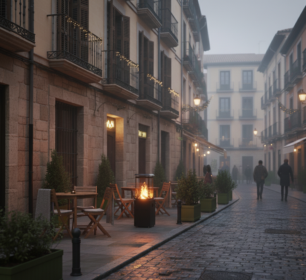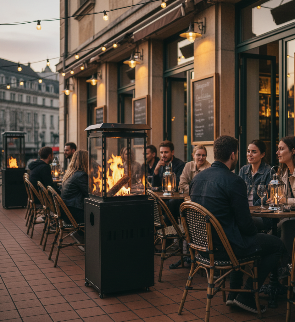 Perfecta para terrazas, carpas y zonas de restauración, esta estufa combina calor, elegancia y practicidad para disfrutar del invierno con estilo.