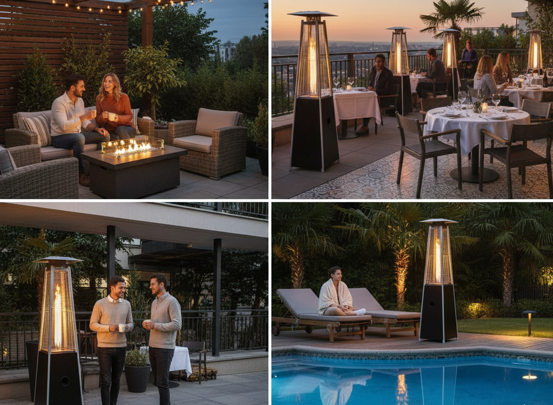Gracias a su potencia, diseño y facilidad de transporte, la Estufa Pirámide Baja Negra es extremadamente versátil. Se adapta a diferentes situaciones y necesidades: desde mantener calientes las zonas de clientes en bares y restaurantes durante la temporada invernal, hasta proporcionar confort en reuniones familiares o eventos al aire libre. Su uso no se limita únicamente a bares y terrazas; cualquier espacio exterior que requiera calefacción confiable puede beneficiarse de su rendimiento y estilo.