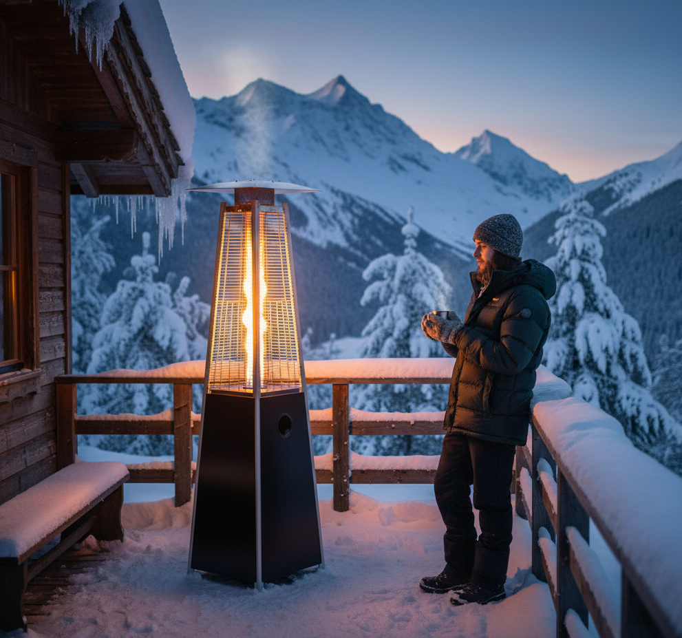 La Estufa Pirámide Baja Negra está especialmente pensada para zonas exteriores, donde mantener una temperatura agradable puede resultar complicado. Su potente emisión de calor y su diseño eficiente permiten crear un ambiente acogedor en terrazas, patios, jardines, zonas de bares o cualquier espacio al aire libre. Es perfecta para el invierno, asegurando que los clientes, invitados o familiares puedan disfrutar del espacio exterior sin preocuparse por el frío.