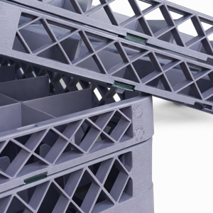 El extensor está fabricado en polipropileno de alta calidad, un material resistente al uso intensivo, a altas temperaturas y a productos químicos habituales en lavavajillas profesionales, garantizando una larga vida útil incluso en entornos de trabajo exigentes.