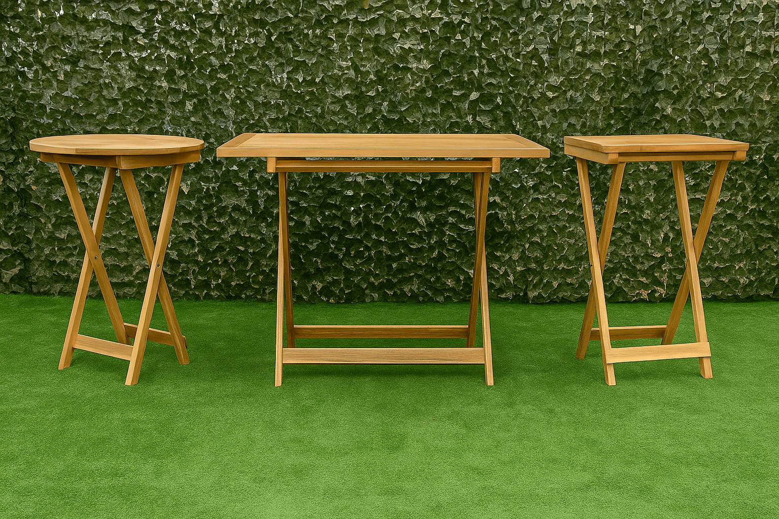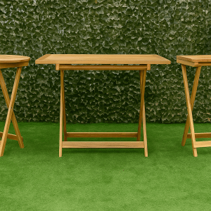 Las patas plegables de madera no solo facilitan su almacenamiento y transporte, sino que también garantizan una gran estabilidad. El tablero cuenta con un acabado en madera natural que añade calidez y sofisticación a cualquier ambiente. Gracias a su sistema plegable, es una opción ideal para quienes necesitan mobiliario práctico sin sacrificar el diseño.