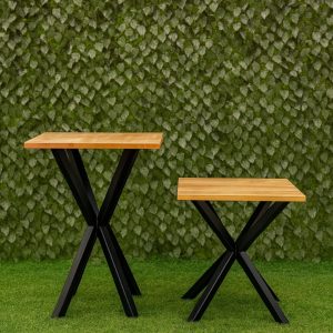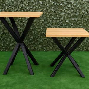 Las patas de la Mesa Bar Argo están elaboradas en acero de alta resistencia, lo que garantiza estabilidad incluso en usos intensivos y en espacios al aire libre. El diseño en forma de “X múltiple” no solo destaca visualmente, sino que reparte el peso de manera uniforme, brindando una sensación firme y segura en todo momento.