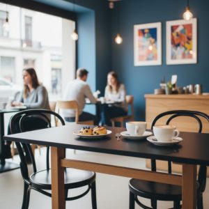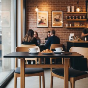 Una mesa bien diseñada no solo sirve como soporte, sino que forma parte del ambiente del negocio. La Mesa Café Central aporta un toque acogedor gracias a la madera natural, que contrasta muy bien con: