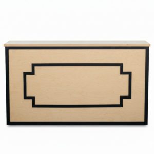 El Mostrador Castiza Deco se inspira en las líneas rectas y las formas geométricas del estilo art déco, reinterpretadas en un formato más cálido y contemporáneo. El contraste entre los tonos naturales de la madera —que pueden personalizarse según el gusto del cliente— y el juego visual de las molduras crea una pieza equilibrada que se adapta tanto a ambientes rústicos como modernos.