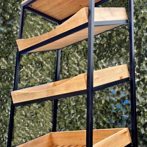 Su combinación de estética industrial y practicidad lo convierte en una pieza clave para cualquier establecimiento que quiera optimizar espacio sin perder estilo.