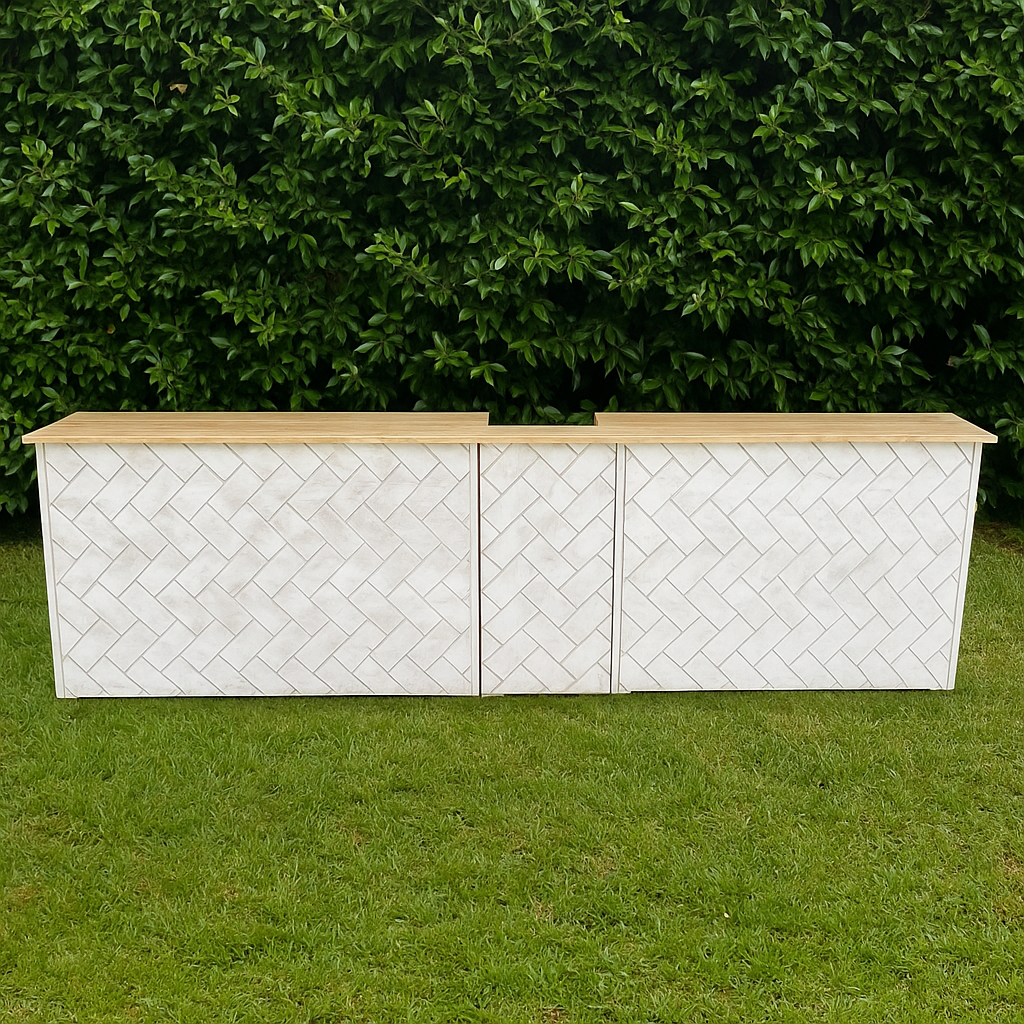 Fabricado con materiales de calidad y con un acabado en estilo modelo ladrillo, este pack no solo aporta utilidad, sino también estética y versatilidad, lo que lo convierte en una opción ideal para bodas, ferias, celebraciones privadas, festivales y cualquier tipo de evento donde se requiera una barra de servicio móvil.