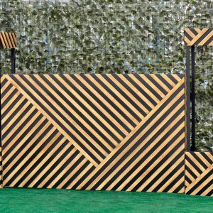 Nuestra Cabina DJ Listada Diagonal está fabricada con madera de pino macizo, un material que destaca por su resistencia y durabilidad. Diseñada para soportar largas horas de uso, ofrece un soporte sólido para todo el equipo de sonido que el DJ pueda necesitar.