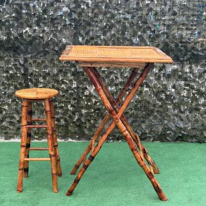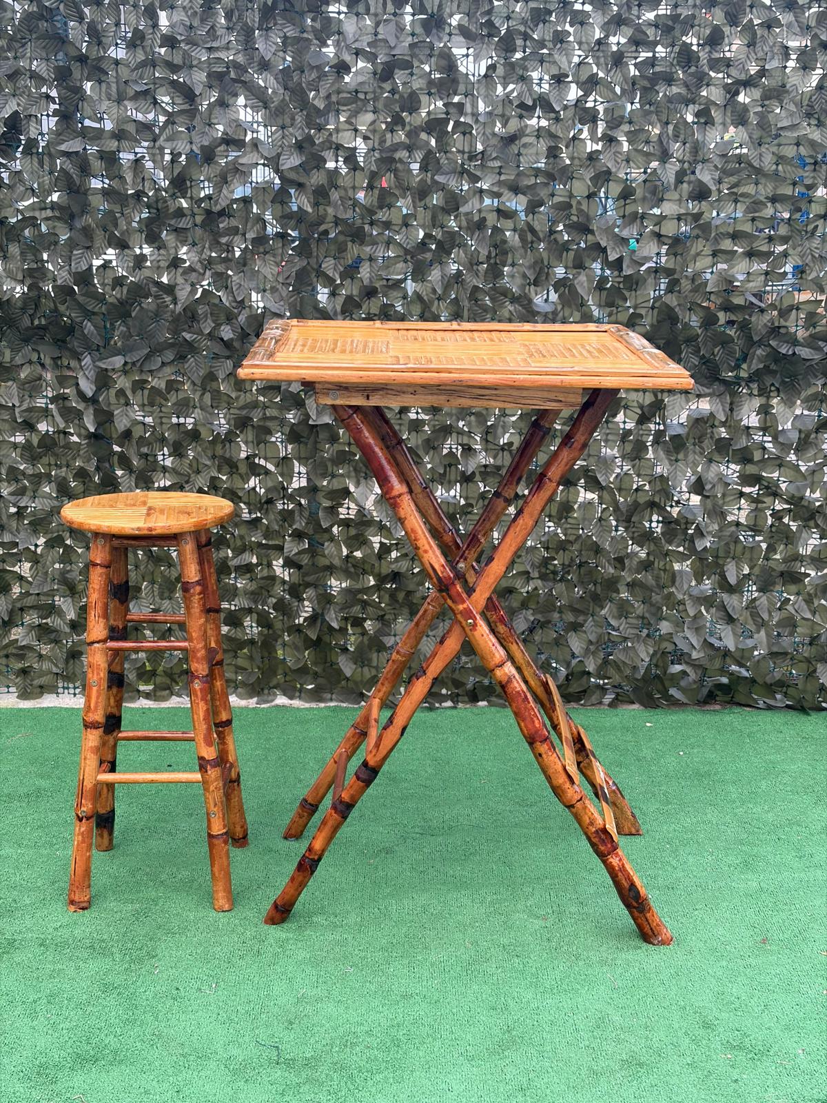 Incluye: 1 mesa plegable alta + 4 taburetes bambú