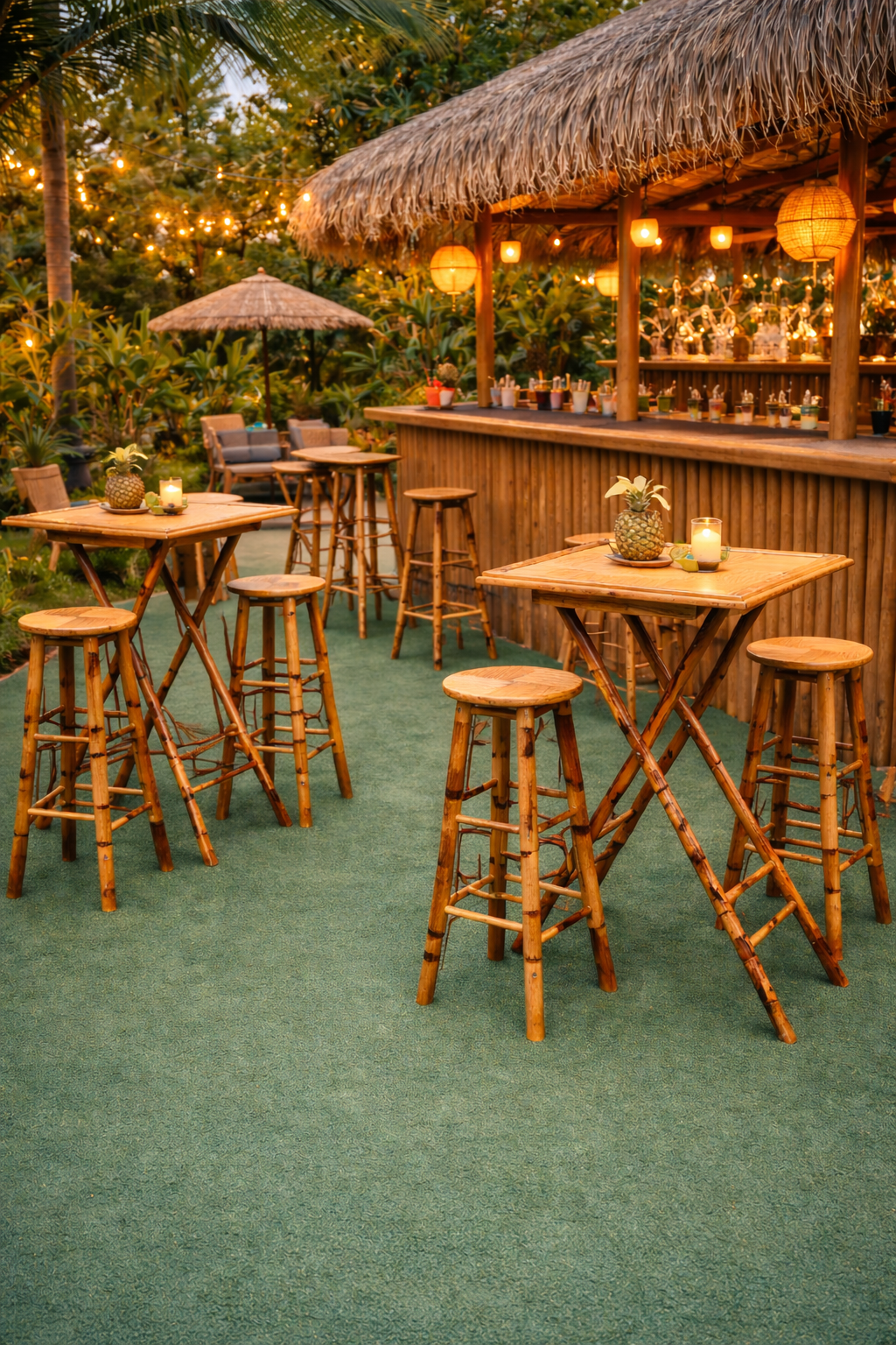 En Eventos Milmar contamos con una amplia gama de productos con acabado bambú, que permiten complementar este pack y crear ambientes completos y coordinados. Mesas auxiliares, banquetas o sillas de bambú pueden integrarse para ampliar la funcionalidad del conjunto sin perder coherencia estética.