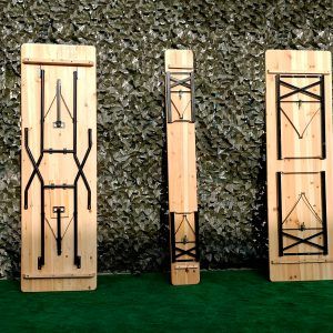 La estructura de las patas está fabricada en acero, lo que garantiza estabilidad y durabilidad incluso en un uso intensivo. Además, las patas plegables permiten transportar y almacenar fácilmente el conjunto cuando no está en uso.