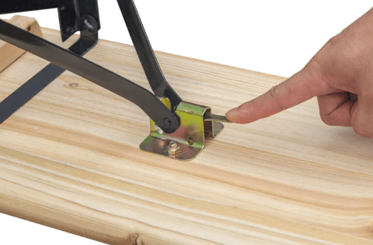 Rejilla de estribo: mecanismo especial que asegura que las patas no se caigan al levantar la mesa o los bancos.