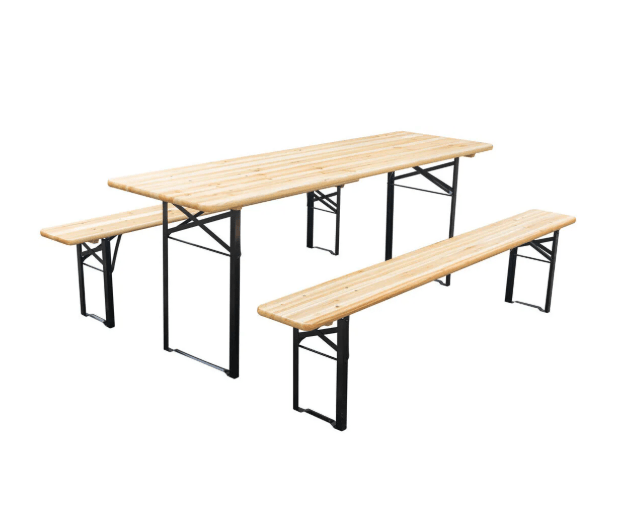 El pack está compuesto por 1 mesa y 2 bancos, todos diseñados con la máxima atención a la resistencia y el confort: