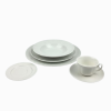 Vajilla de estilo clásico pero a la vez contemporánea ya que es un modelo en color crema (cada vez más tendencia en bodas, eventos y restauración). Tenemos el juego de plato llano 27 cm, plato hondo 22,5 cm, plato postre 22 cm, plato pan 15 cm y el juego de café para tener la vajilla completa.