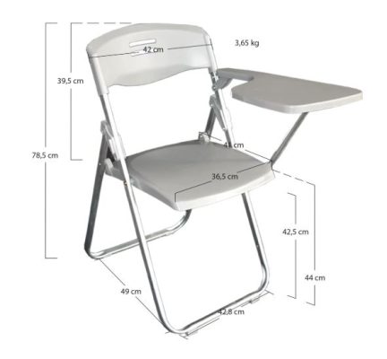 La Silla Plegable con Pala es una solución funcional y versátil, especialmente diseñada para entornos de formación, exámenes, oposiciones y eventos donde se requiere una disposición rápida y eficiente del mobiliario. Su diseño plegable permite un fácil transporte y almacenaje, sin renunciar a la comodidad y estabilidad necesarias para largas sesiones de uso.